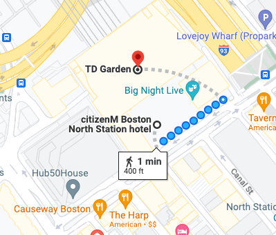 At the Encore Boston Harbor, you’ll be plenty entertained. Besides for having a shuttle route that goes to the TD Garden on game nights, they’ve also got plenty to come back to with their casino floor, steakhouse, Chinese restaurant and bar. The shuttle runs back and forth one hour before and one hour after any Bruins or Celtics games and is a mere 5-8 minute ride from the hotel.